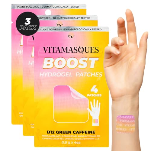 Vitamasques Energy Patches, Boostme Wellness Hydrogel Pads (3-Pack) – B12 Vitamin Patches for Women & Men, Energy & Focus for Adults – Cruelty-Free, Korean Skin Care Caffeine Gel Pads